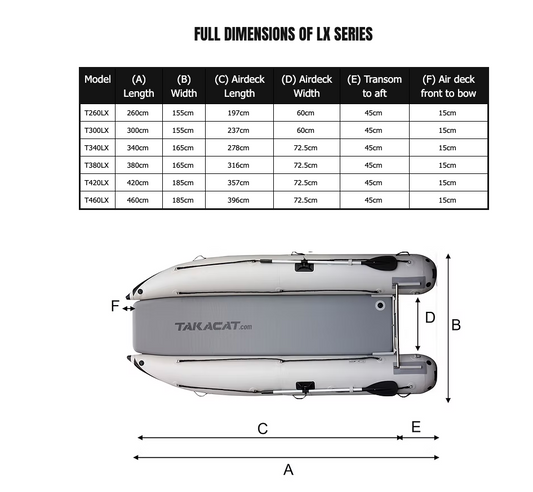 Utelising our Tube TransomⓇ, drop stitch air deck with over inflation valve (unique to Takacat) and 0.9mm Fabrics our boats are one of the lightest inflatable brands on the market. No other boat splits its weight like the Takacat.